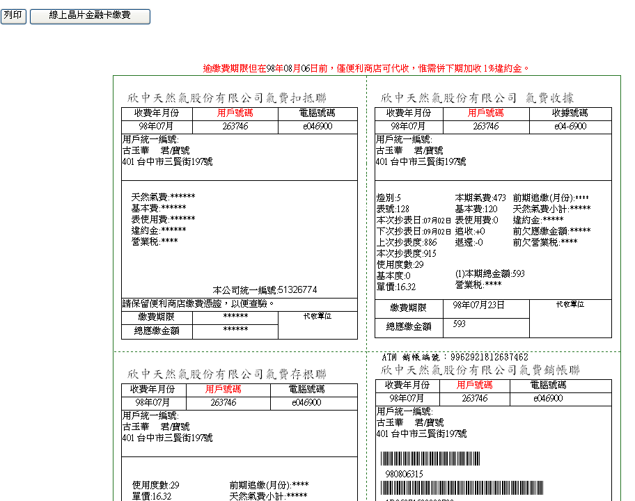 | 步驟七:繳費完成(可印列畫面儲存供日後查詢核對) |