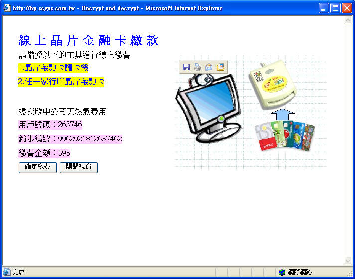 | 步驟三:備妥晶片金融卡及讀卡機,確認您的繳費金額後,點選確定繳費 |