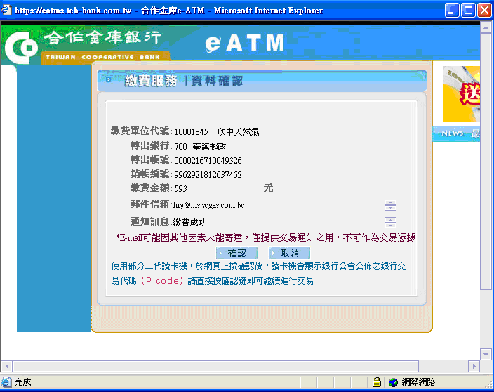 | 步驟五:核對繳費金額及銷帳編號正確後,點選確認鈕 |